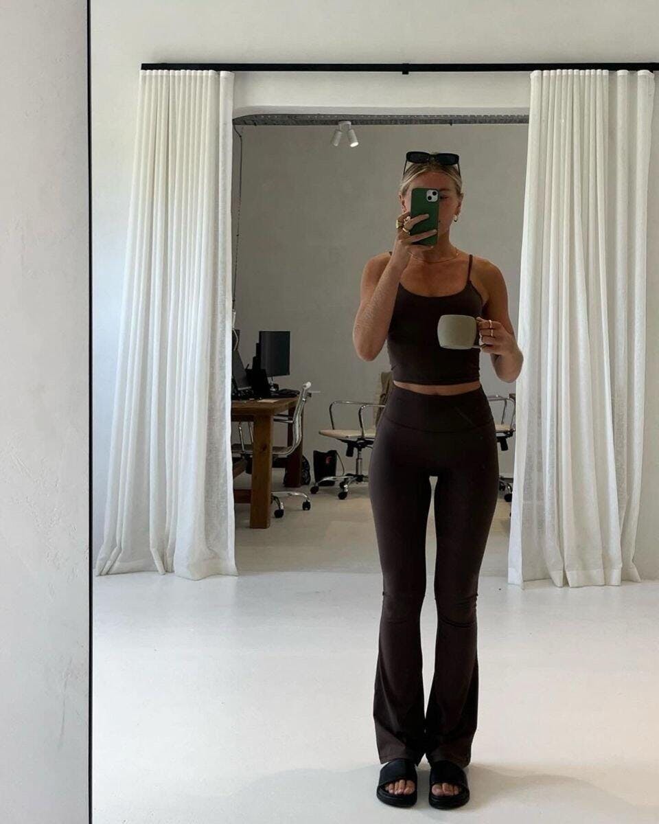Sculpting high-rise fit for a smooth, elongated silhouette that moves with you.